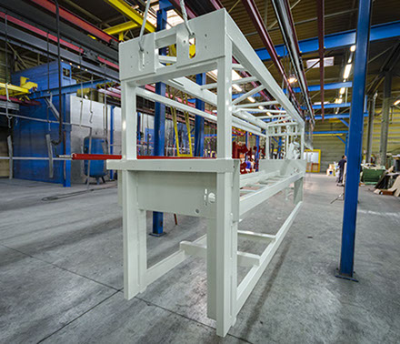 - Nous avons également la possibilité de traiter des pièces grands volumes allant jusqu’à 8 mètres de longueur, 2,50 mètres de largeur, 3 mètres de hauteur, poids 2 tonnes. (garde-corps, portails, escaliers, pièces industrielles, …)
